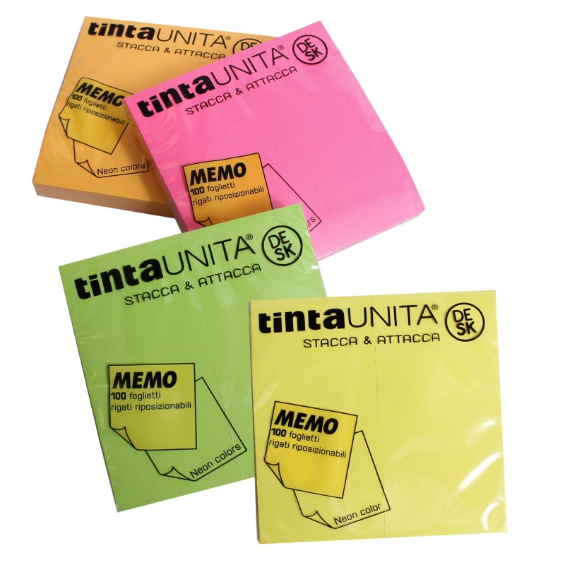 Blocchetti/Foglietti riposizionabili Tinta Unita Desk Memo (ex Taggy) 75x75 - 100 fogli in 4 colori neon
