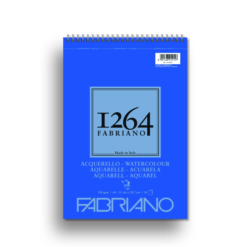 \nCarta per acquerello Fabriano 1264 prodotta con il 25% di cotone, superficie a grana fina di altissima qualità: assorbente, ma non troppo, resistente ai ripetuti passaggi del pennello
