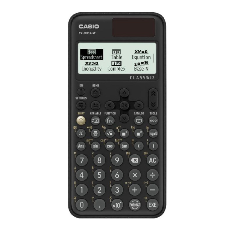 Calcolatrice Casio Scientifica FX991CW con oltre 550 funzioni progettate per la Scuola. Display naturale LCD ad alta risoluzione con 192 x 63 pixel e menù a icone. Foglio di calcolo per studiare la statistica. Codice QR per proseguire calcoli su PC. Risoluzione equazioni e sistemi fino a 4 equazioni e calcolo matriciale 4 x 4. Alimentazione a batteria (LR44 inclusa).