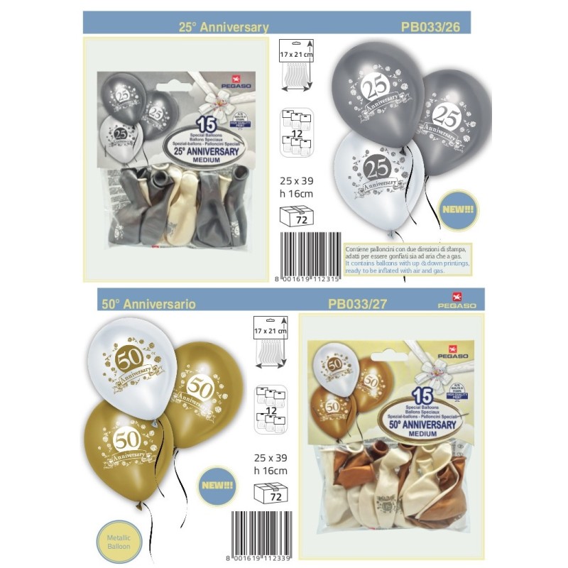 Busta 15 Palloncini medi METALLIZZATI 25° - 50° ANNIVERSARIO