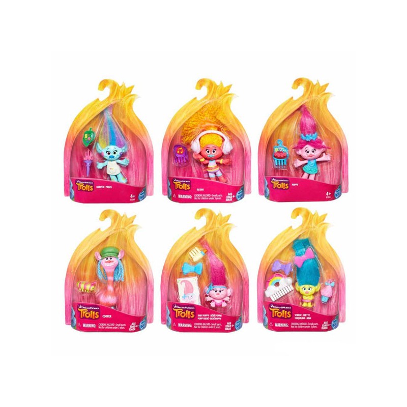 TROLLS PERSONAGGIO 12 CM in dotazione un piccolo pettine per acconciare i lunghi capelli soffici. L'assortimento coniene il protagonista Poppy e altri 8 amici età 4+