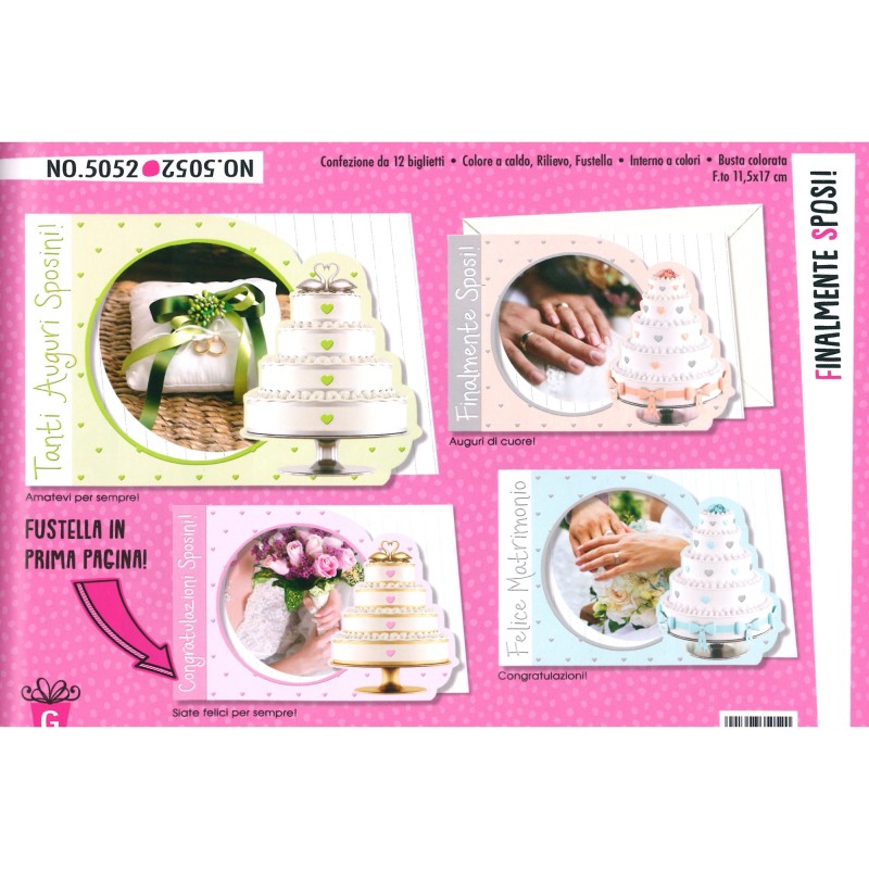 Scatola 12 Biglietti Matrimonio - NOZZE orizzontale fotografico + torta fustellata 4 soggetti formato 12x18