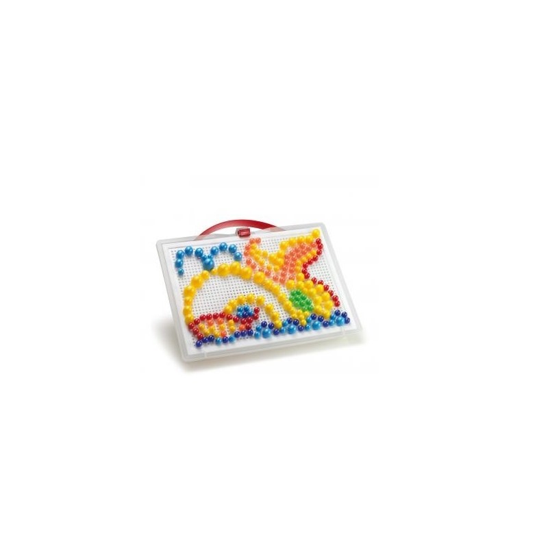 CHIODINI FC PORTABLE . Inserendo i chiodini nella tavoletta i bambini esprimono liberamente la loro creatività. Contenuto: 280 Chiodini in 3 diametri (10, 15, 20 mm) e 5 colori, 1 Tavoletta traforata 28 x 20 cm, 1 Cestello con maniglia e 1 Album di e