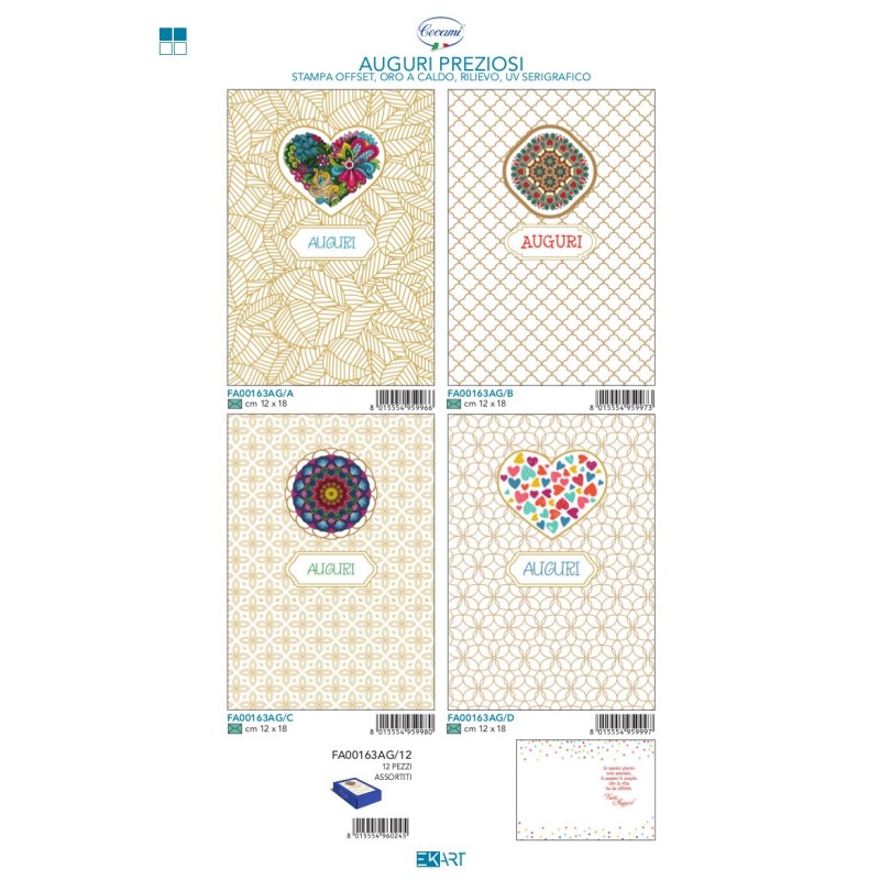 Scatola 12 Biglietti Auguri 4 soggetti con oro e rilievo - stampa interna formato 12x18