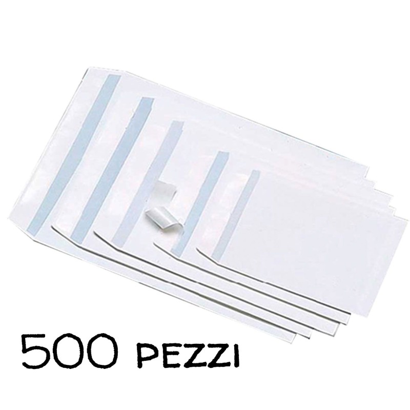 Confezione da 500 Buste self a sacco bianche con chiusura adesiva 100gr 23x33