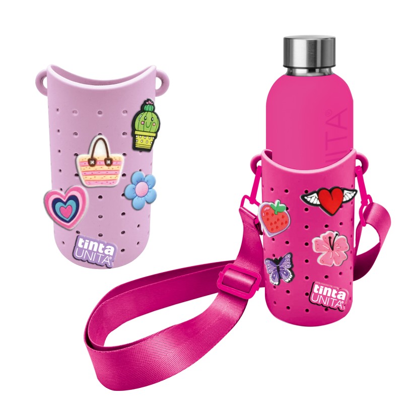 PortaBorraccia TU CLICK in Silicone con borraccia Termica Tracolla 2 Colori 4 Pins microiniezione + 1 Logo 15,8x8 cm 550 ml